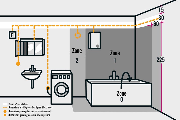Les salles de bains sont divisées en trois zones de protection: