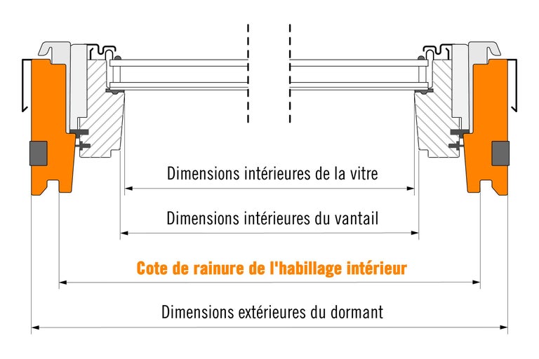 Les dimensions de la rainure de l'habillage intérieur de ton ancienne fenêtre de toit t'aideront si tu veux monter une nouvelle fenêtre de toit: mesure pour cela l'écart entre les rainures, c'est-à-dire les bords, de l'habillage intérieur. Note la largeur et la hauteur en millimètres. Cette mesure est généralement suffisante pour la commande de la fenêtre de toit.