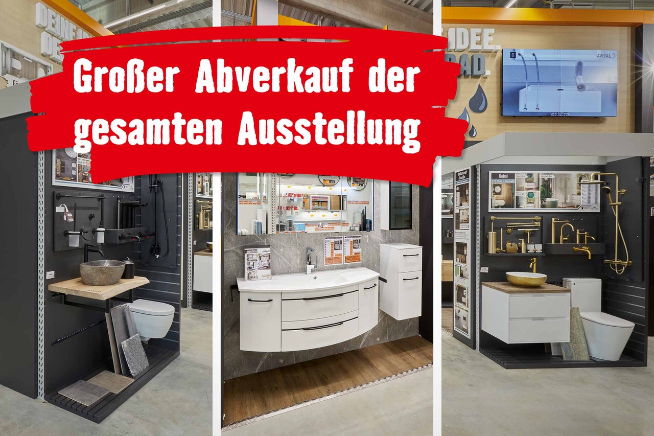 Ab sofort sind ausgewählte Musterartikel stark reduziert – Badewannen, Duschwannen, Sanitärkeramik , Armaturen und vieles mehr.