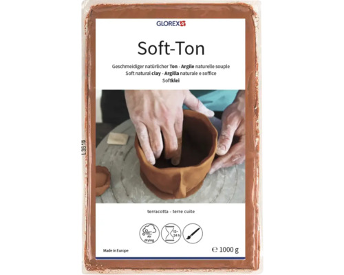 Soft-Ton ist ein natürlicher, speziell weicher und geschmeidiger Ton. Hervorragend für Kinder geeignet. Härtet an der Luft und wird extrem fest. Fertige Modelle können individuell bemalt werden. Soft-Ton ist lufthärtend
