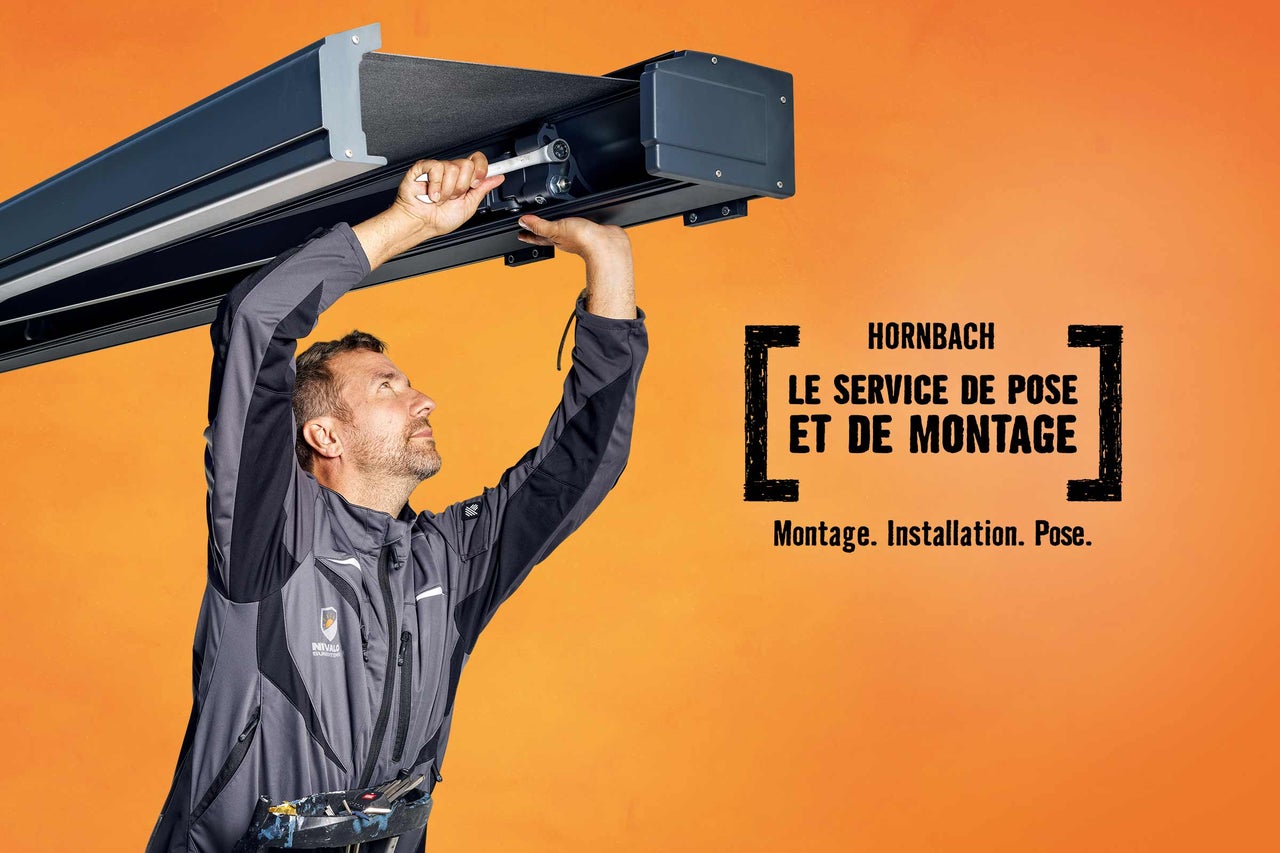 De l'ombre pour ta pause projet: un store banne pour ta terrasse. Tu n'as pas le temps de le faire toi-même? Alors fais monter ton store. Tout d'une seule main, avec le service de pose et de montage HORNBACH.