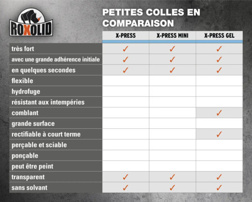 Caractéristiques produit du gel - colle instantanée ROXOLID X-PRESS – 3 g