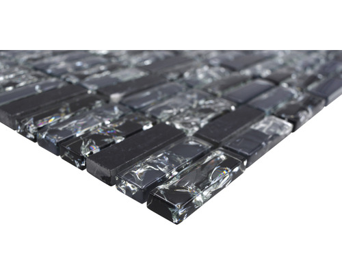 Mosaïque de verre avec pierre naturelle Crystal XICS1228 mélange de noir 32.2x31 cm