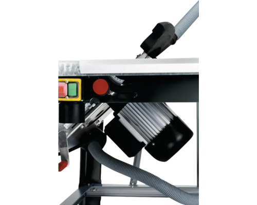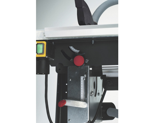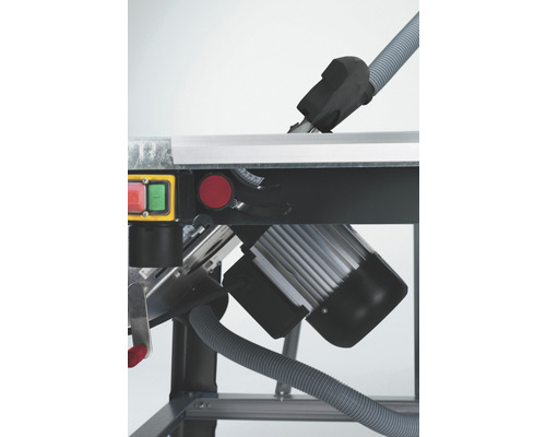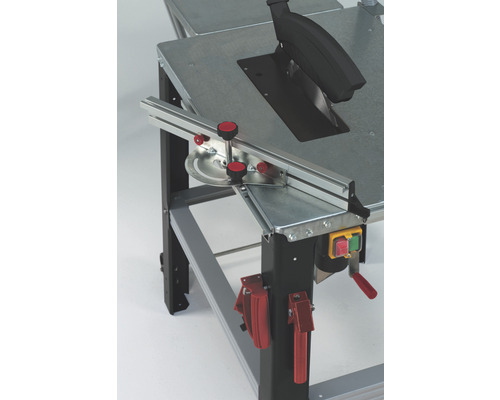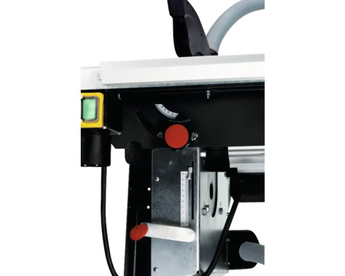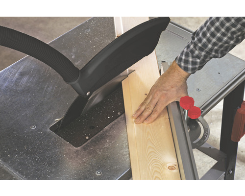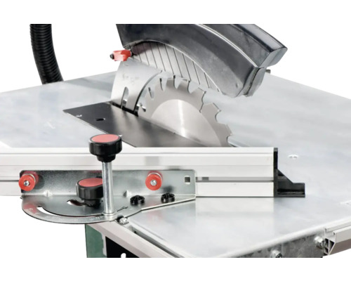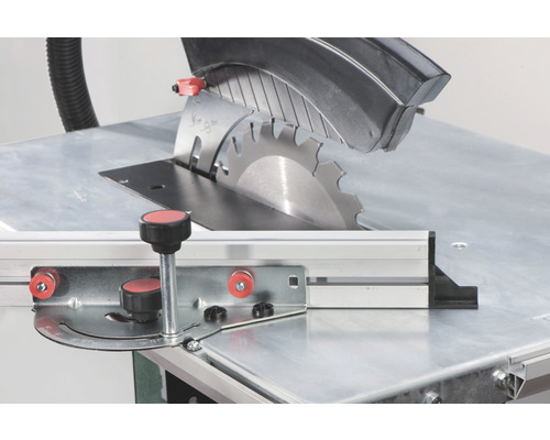 - Inclus dans la livraisonLame de scie en métal dur avec dents alternées (24 dents), Châssis avec poignée, Rallonge de table (550 x 800 mm), Butée universelle, Dispositif d'aspiration des copeaux Bâton de poussée