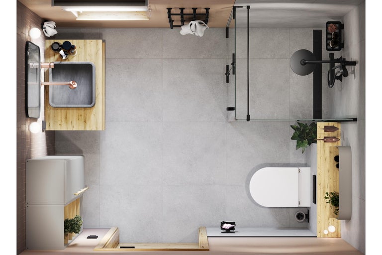 Das Duschbad des Badkonzepts ist barrierearm gestaltet. Die Dusche ist ebenerdig, damit Du einen leichteren Ein- und Ausstieg hast.