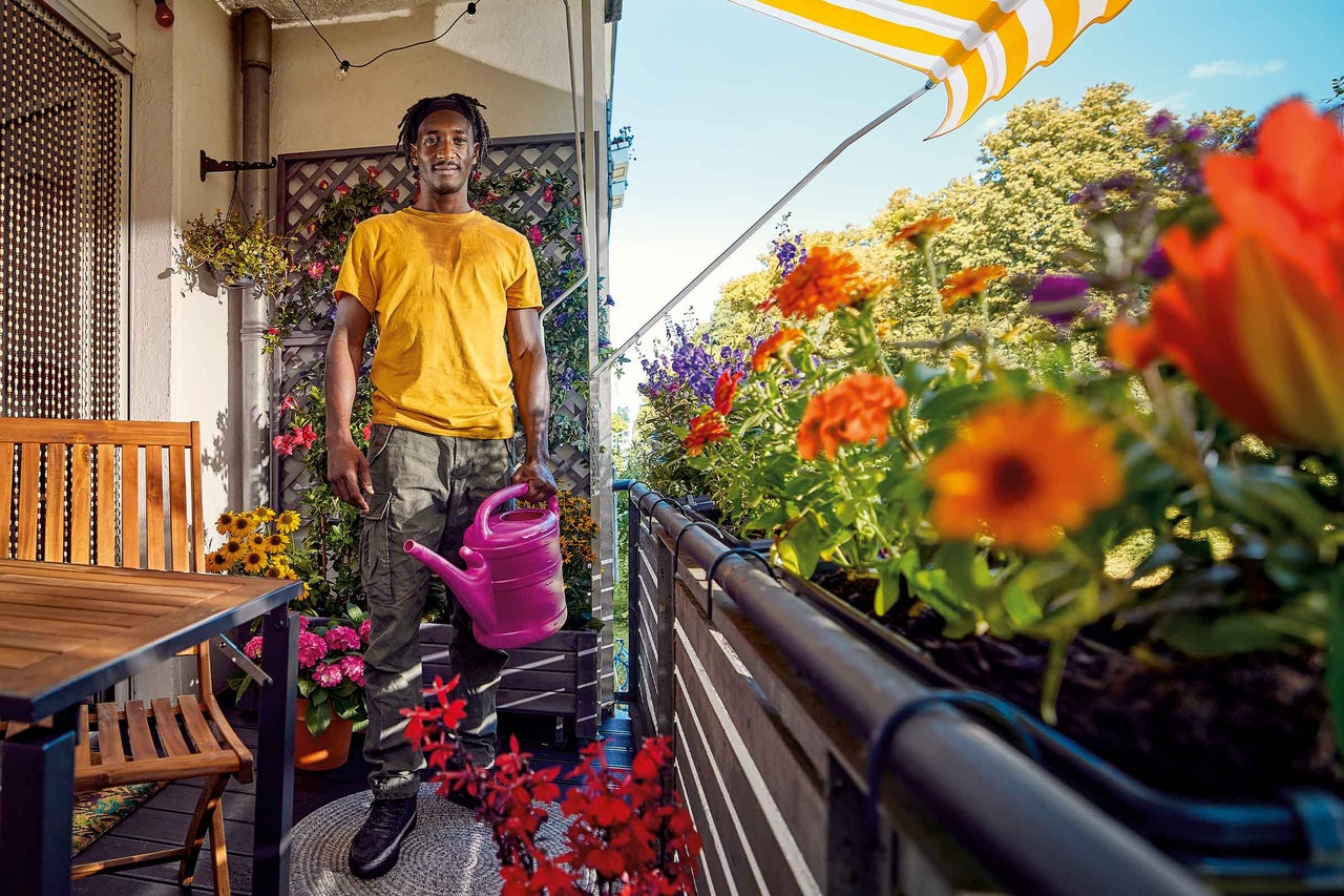 Die Vision steht: Neue Balkonpflanzen müssen her, am besten bienenfreundliche. Unter selbst angebauten Balkongemüse läuft nichts, das heißt, Du brauchst ein Hochbeet − oder klappt das auch in Kübeln? Deine Balkonmöbel baust Du auf jeden Fall selbst, das ist Ehrensache. Und ein guter Sonnen- und Windschutz darf auch nicht fehlen ... Aber passt das alles überhaupt auf einen kleinen Balkon? Klar, mit der richtigen Planung klappt alles.