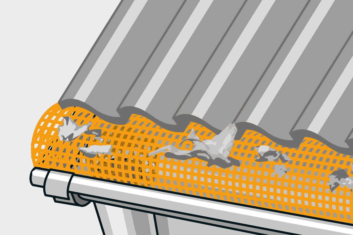 Ein Dachrinnenschutz verhindert, dass Blätter in die Dachrinne gelangen oder Vögel unter den Dachziegeln Nester bauen. Blätter, die auf den Dachrinnenabfluss fallen, trocknen von selbst und werden vom Wind weggeweht. So setzt du den Schutz ein: