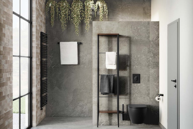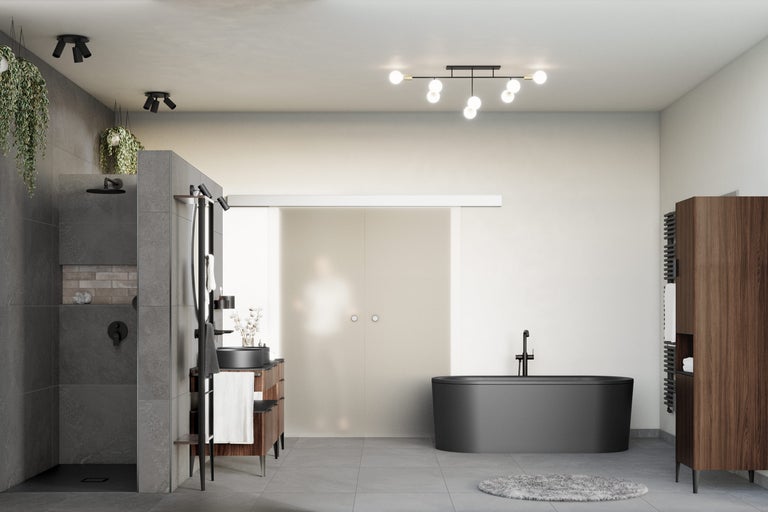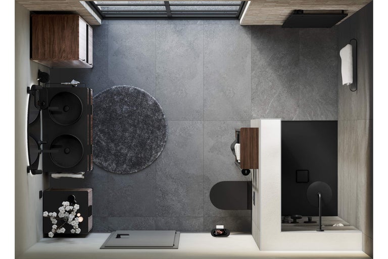 La salle d'eau de ce concept de salle de bains est conçue pour être facile d'accès. La douche est de plain-pied, ce qui te permet d'y entrer et d'en sortir plus facilement.