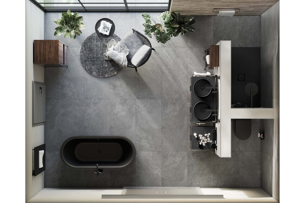 La salle d'eau de ce concept de salle de bains est conçue pour être facile d'accès. La douche est de plain-pied, ce qui te permet d'y entrer et d'en sortir plus facilement.