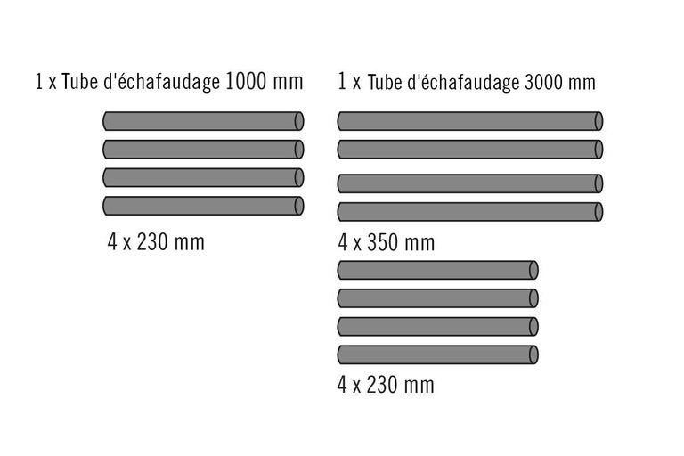 Porte des vêtements de protection adaptés pour les étapes de travail suivantes. Raccourcir les tubes (3000 mm et 1000 mm) avec la scie à métaux conformément aux indications. Ébavurer les tubes sciés à l'intérieur et à l'extérieur avec la lime mi-ronde pour éviter des blessures.