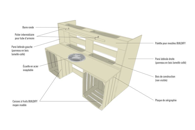 Mmmmh, tout simplement délicieux, la cuisine pour enfants Pebbles de BUILDIFY pour les petits chefs en herbe! Elle comprend tous les ingrédients indispensables à une cuisine pour enfants, y compris un évier et un support pour les ustensiles de cuisine. Nous te montrons comment construire toi-même cette cuisine pour jouer à faire la cuisine.