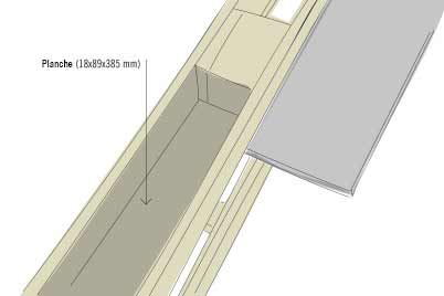 Insérer la planche restante (385 mm) en haut dans la palette (pour 3a et 3b). Elle se trouve alors sur la planche préalablement fixée (170 mm) et l’étagère.