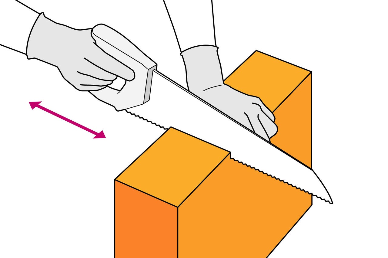 Passons maintenant à la découpe des blocs de béton cellulaire. Marque les blocs et découpe-les à la bonne taille. Le mieux est d'utiliser une scie à béton cellulaire ou une scie égoïne électrique.