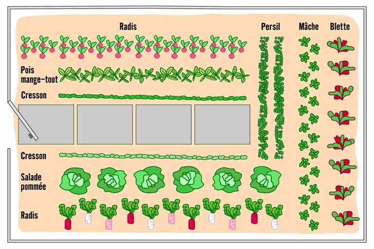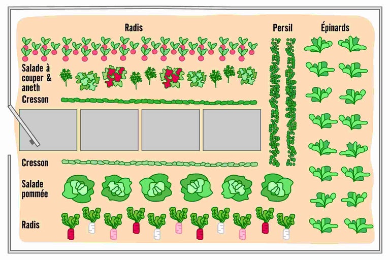 - Respecte la rotation des cultures. Plante d'abord des plantes gourmandes comme le concombre, puis des plantes moyennement gourmandes comme la salade et enfin des plantes moins gourmandes comme le radis, en alternance.