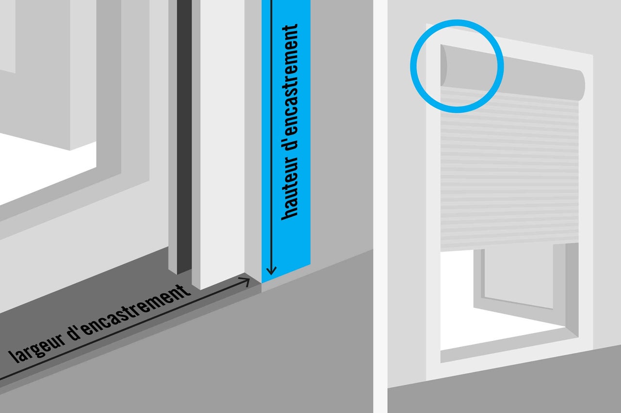 Mesure de la maçonnerie à la maçonnerie. Attention: La profondeur de la butée du volet roulant doit toujours être soustraite de la profondeur de l'ouverture!