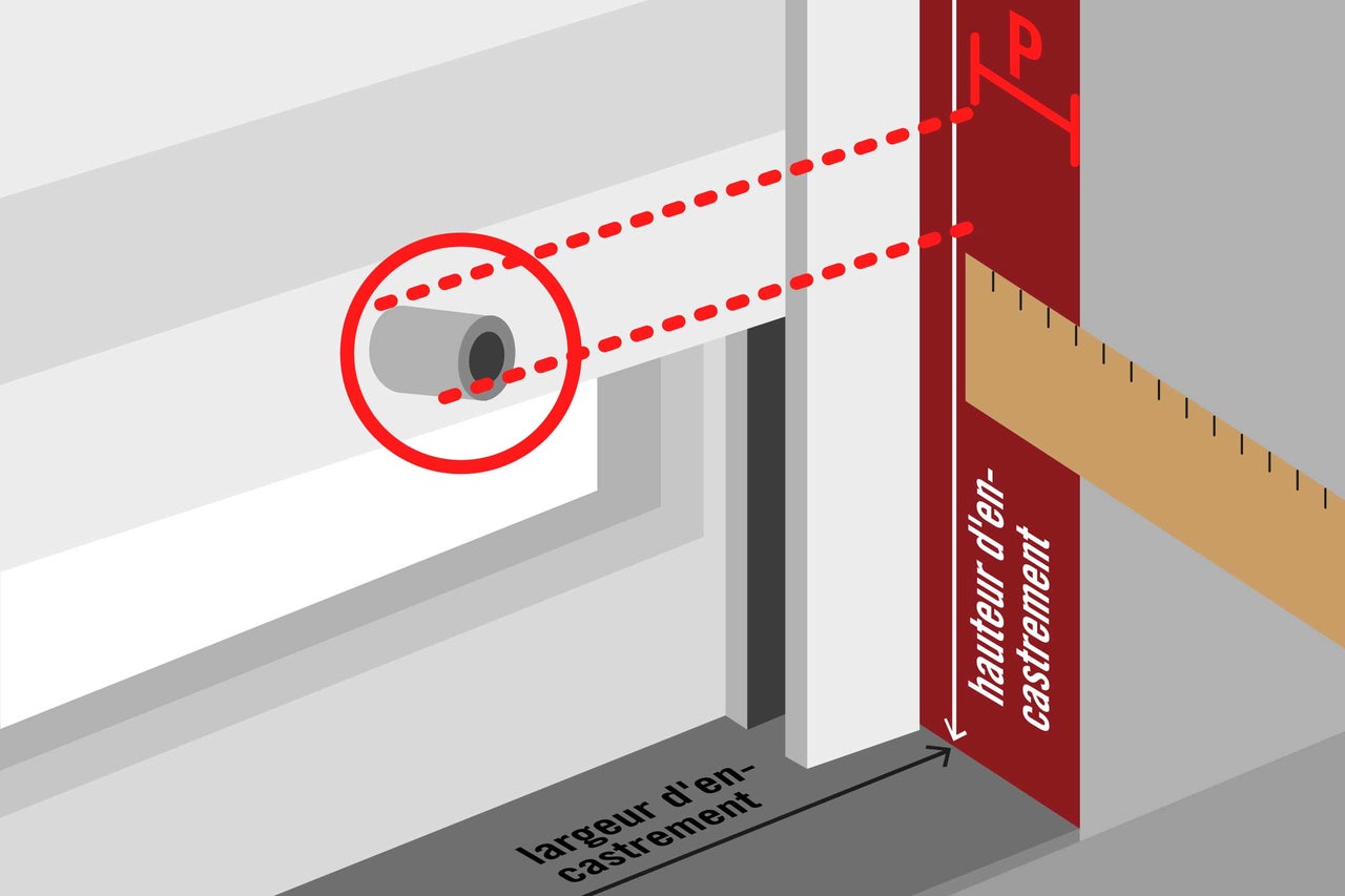 Veille à laisser un espace suffisant entre le cadre de la porte ou de la fenêtre et le store occultant. La profondeur (P) de ta porte ou de ta fenêtre doit être supérieure à la profondeur d'encastrement du produit afin que tu puisses installer la moustiquaire.