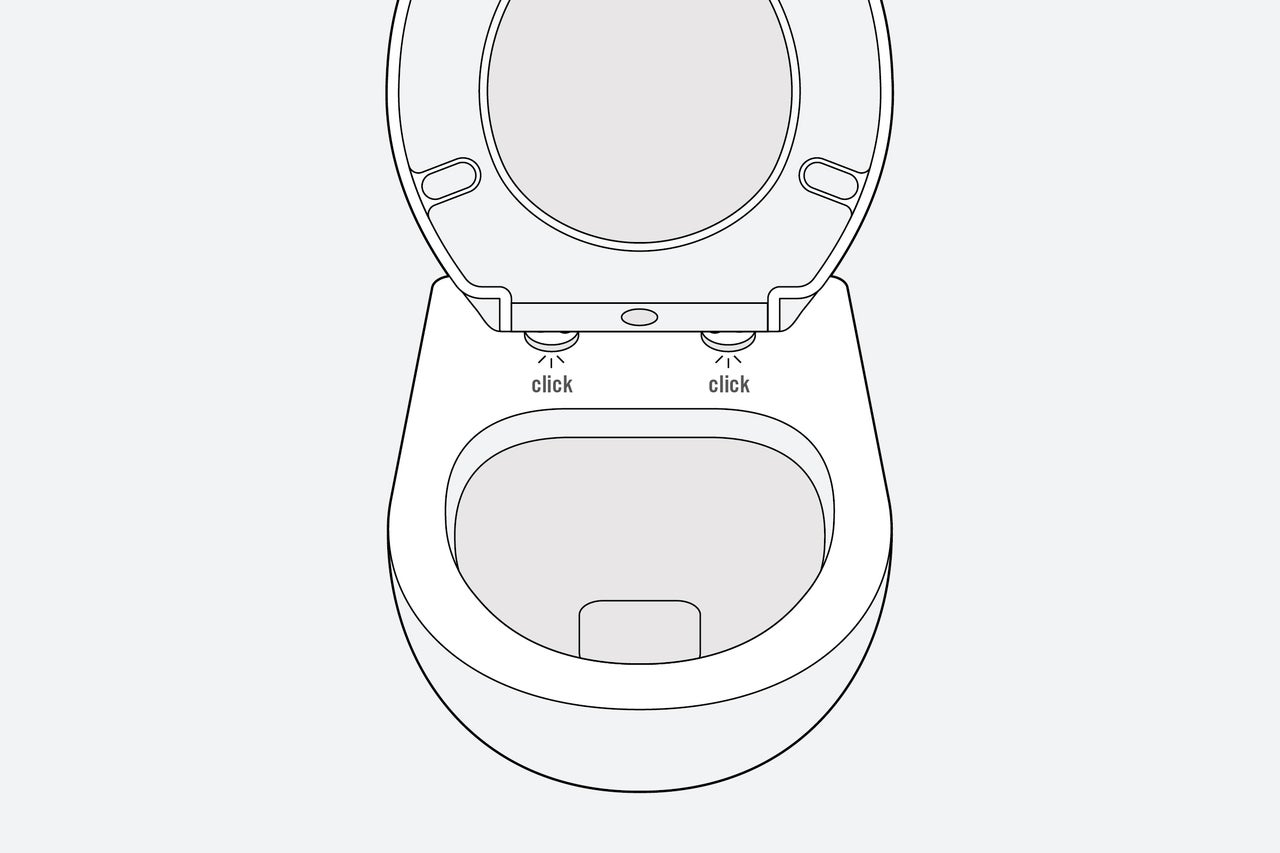 Tu peux ensuite remettre l'abattant en place. Il suffit d'appuyer légèrement pour qu'il s'enclenche dans sa position. L'abattant WC est désormais fixé.