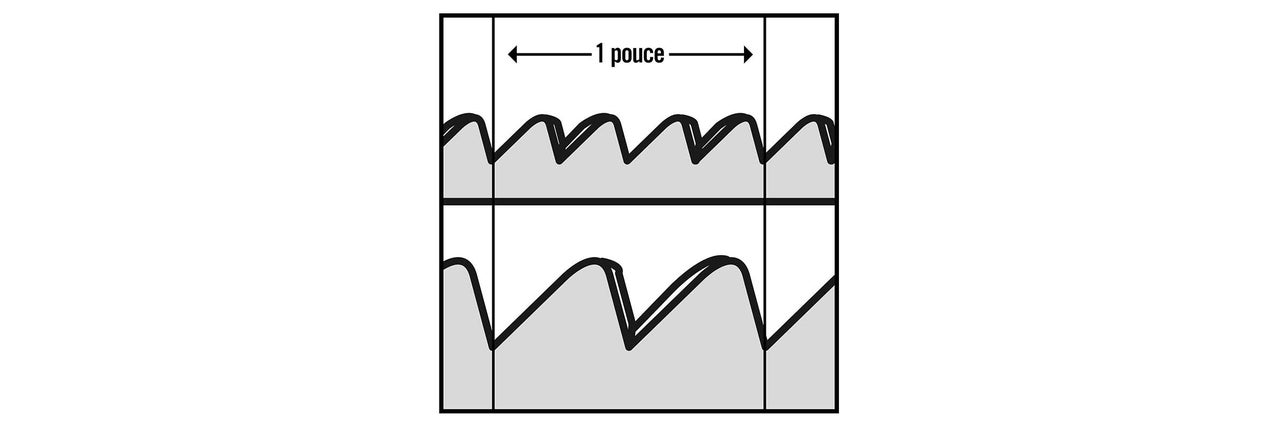 Si la scie est qualifiée de «fine», tu peux t'attendre à une denture fine. Il en va de même pour les scies à branches ou à béton cellulaire: leur nom en dit long. La plupart des dents des scies européennes sont avoyées, c'est-à-dire qu'elles sont orientées alternativement vers la gauche et vers la droite. Cela garantit que le trait de scie est plus large que la scie et empêche celle-ci de se coincer. Il n'est parfois pas très clair pour quels matériaux les scies sont adaptées. Dans ce cas, tu dois examiner les dents des scies.