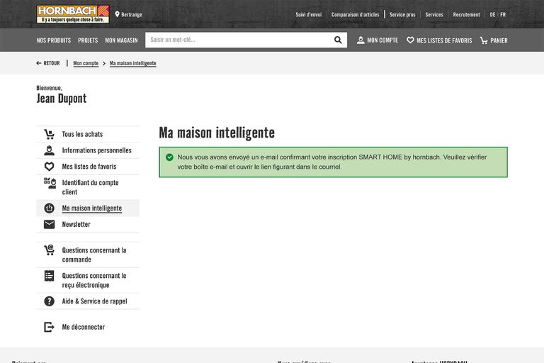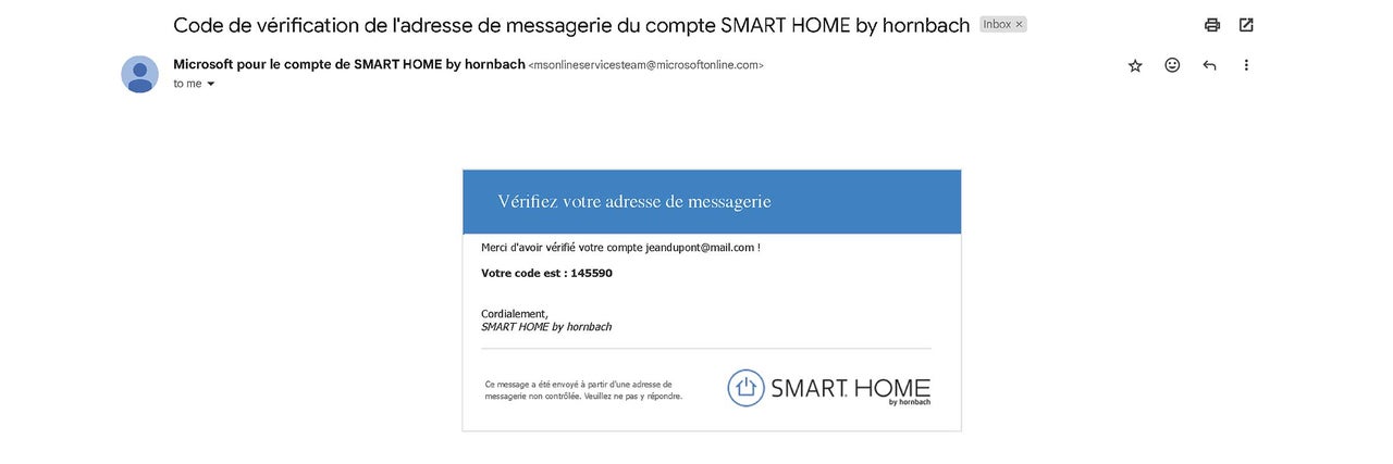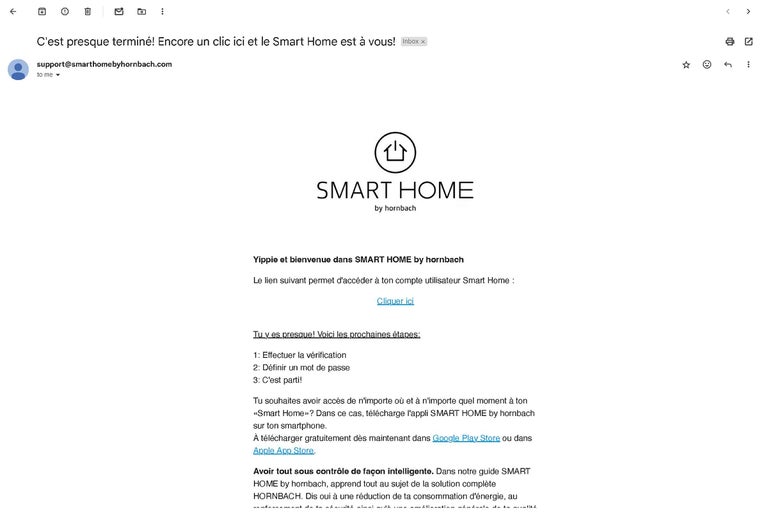 Clique sur le lien dans l'e-mail pour enregistrer ton adresse e-mail pour SMART HOME by hornbach.