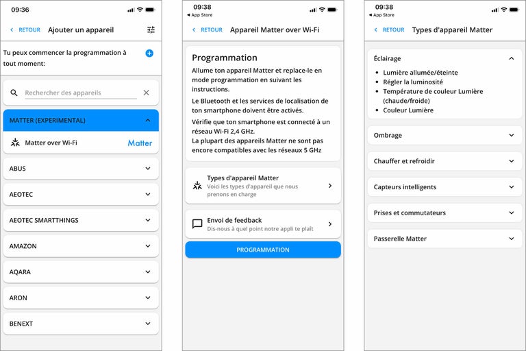 Merci de noter que nous sommes encore en phase expérimentale et que tous les types d'appareils ne sont pas encore pris en charge par Matter. Nous attendons ton feedback avec impatience.