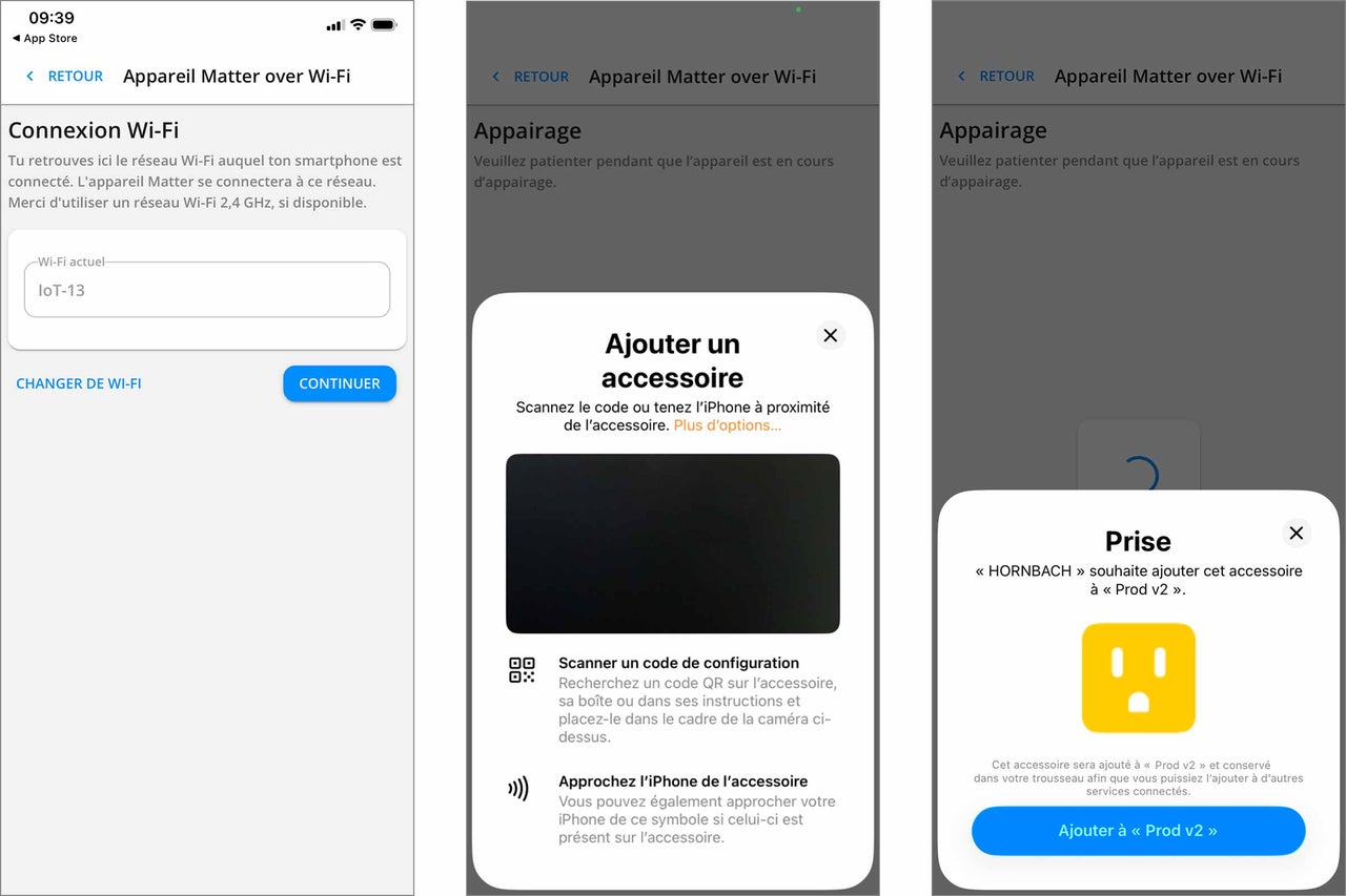 Vérifie la connexion Wi-Fi, puis scanne le code QR Matter de ton appareil: